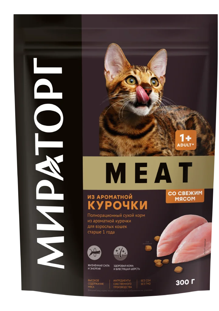 0,3кг Корм Мираторг Meat для взрослых кошек старше 1 года с ароматной Курочкой