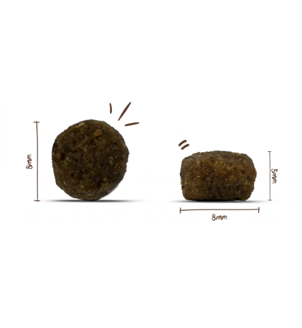 Состав: Свежее куриное мясо (20 %), ячмень, кукуруза, белок птицы (сушеный), кукурузный белок, животный жир, свежая форель (5 %), гидролизат белка, семена льна, карбонат кальция, рис, печеночная мука, лососевый жир (0,5 %), горох (сушеный, 0,4 %), хлорид калия, брусника (сушеная, 0,1 %), черника (сушеная, 0,1 %), сушеная петрушка (0,1 %), дрожжи (сушеные, 0,1 %), цветки бархатцев (сушеные, 0,05 %).