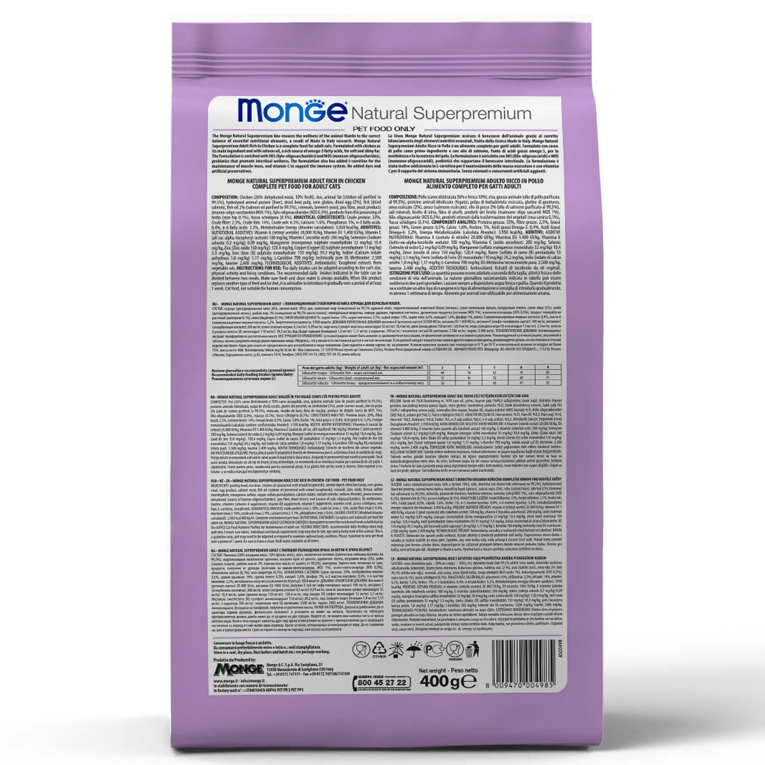Monge (Монж) Cat Daily Line сухой корм из мяса курицы для стерилизованных кошек и кастрированных котов 1,5 кг.