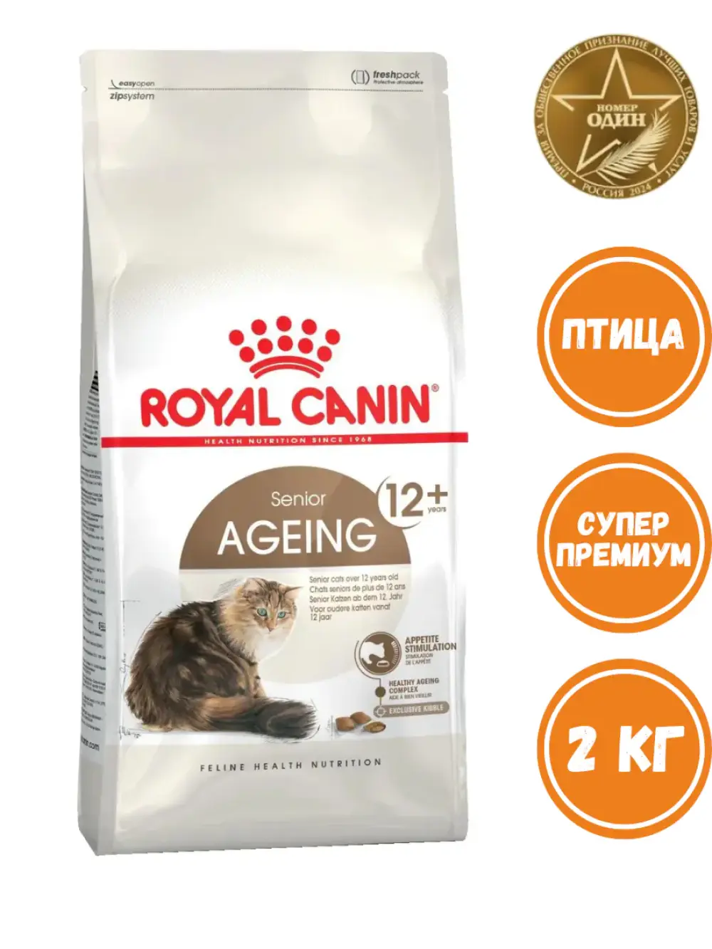 Корм для пожилых кошек (с 12 лет) Royal Canin Ageing, для чувствительных зубов и десен, особая форма крокет, сбалансированное содержание фосфора, с комплексом Healthy Ageing