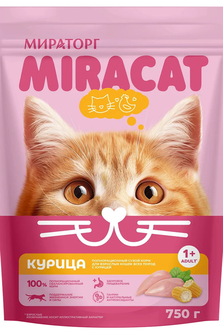 0,75кг Корм Мираторг Miracat для взрослых кошек всех пород с Курицей