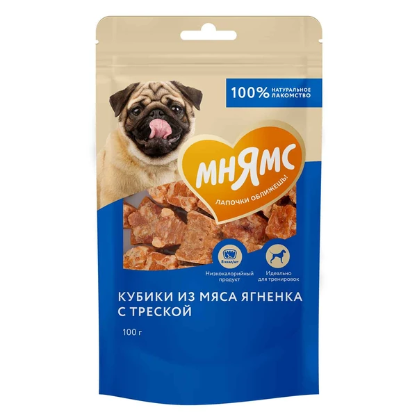 100гр Лакомство Мнямс для собак "Кубики"из мяса Ягненка с Треской