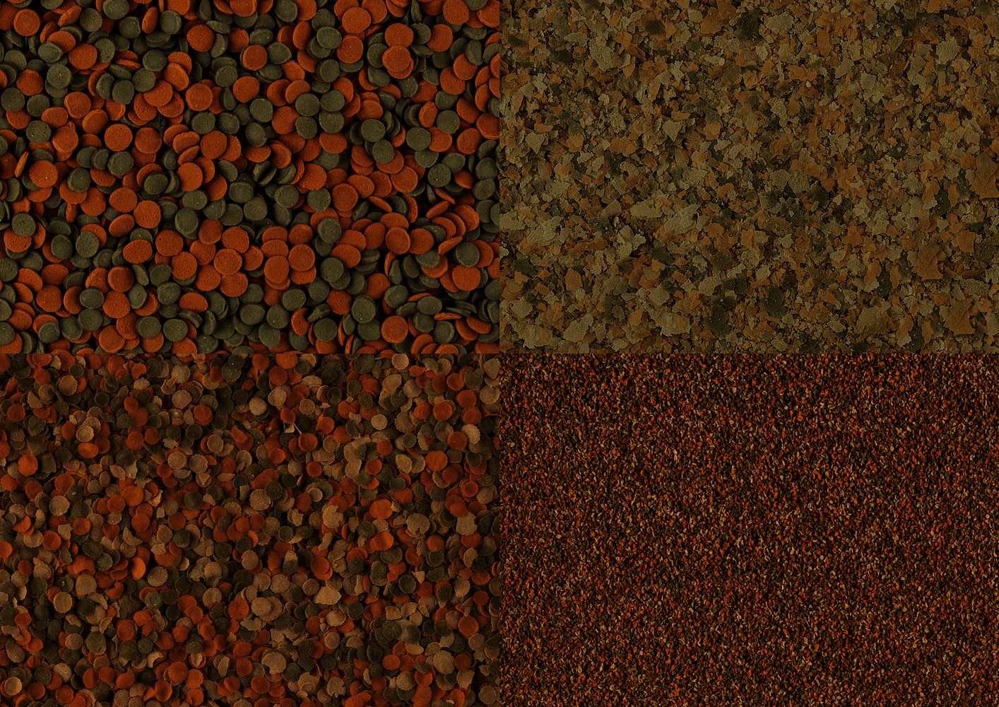 • Хлопья, чипсы, гранулы и вэйферсы с различной тонущей способностью в воде