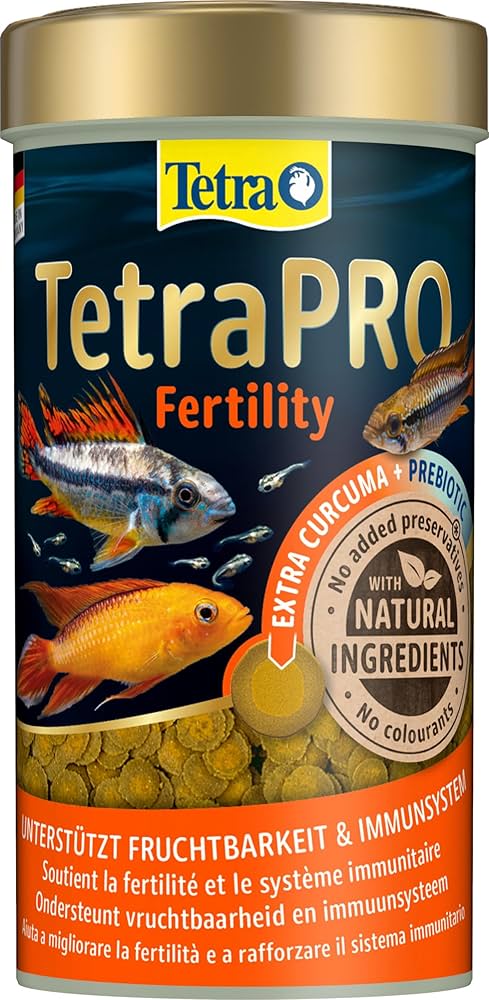 TetraPRO Fertility - это бережно изготовленный и высокопитательный полноценный премиальный корм с куркумой для поддержания репродуктивных функций рыбок, качества икры и развития личинок.
