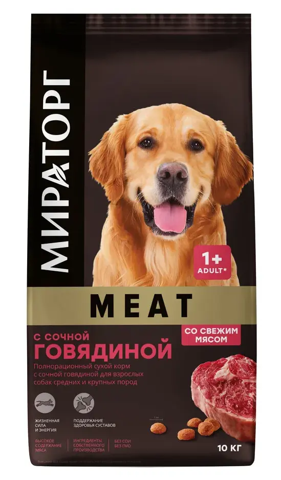 10кг Корм Мираторг Meat для взрослых собак средних и крупных пород с сочной Говядиной