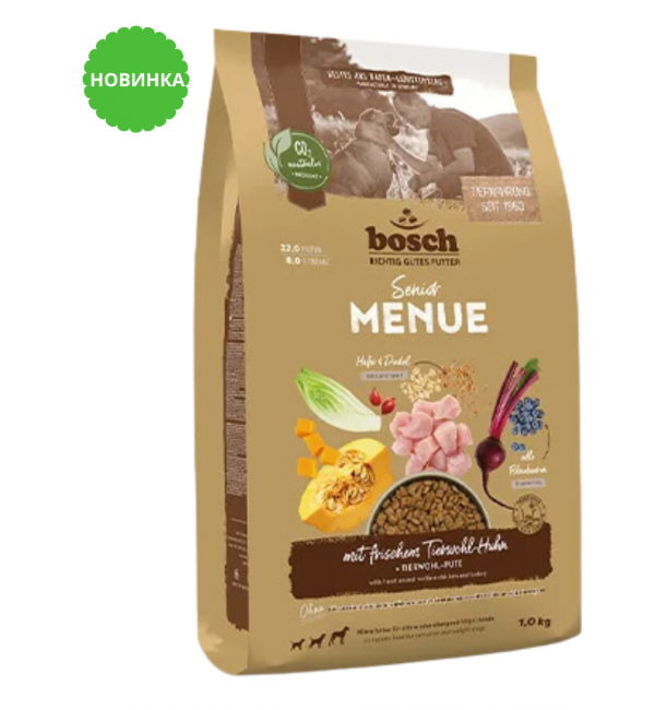 12кг Корм Bosch HPC MENUE Senior низкозерновой для пожилых собак средних и крупных пород с Курицей, полбой и овсом