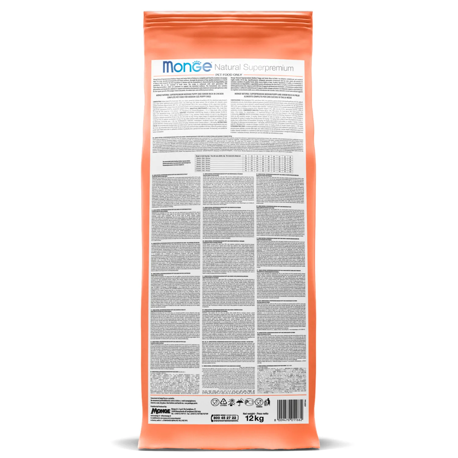 12кг Корм Monge Puppy&Junior SP Monoprotein Salmon/Rice для щенков всех пород с Лососем и рисом