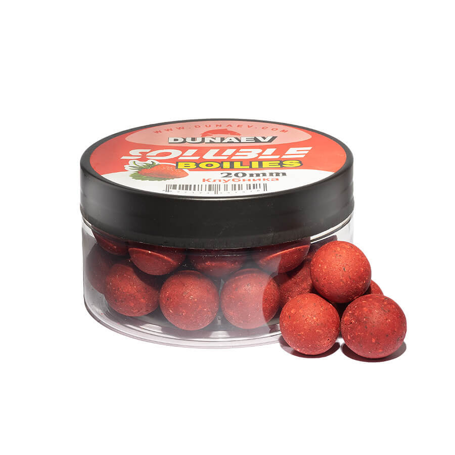 Бойлы Dunaev пылящие Клубника выпускаются диаметром 14 и 20 см и рекомендованы в качестве прикормочных.