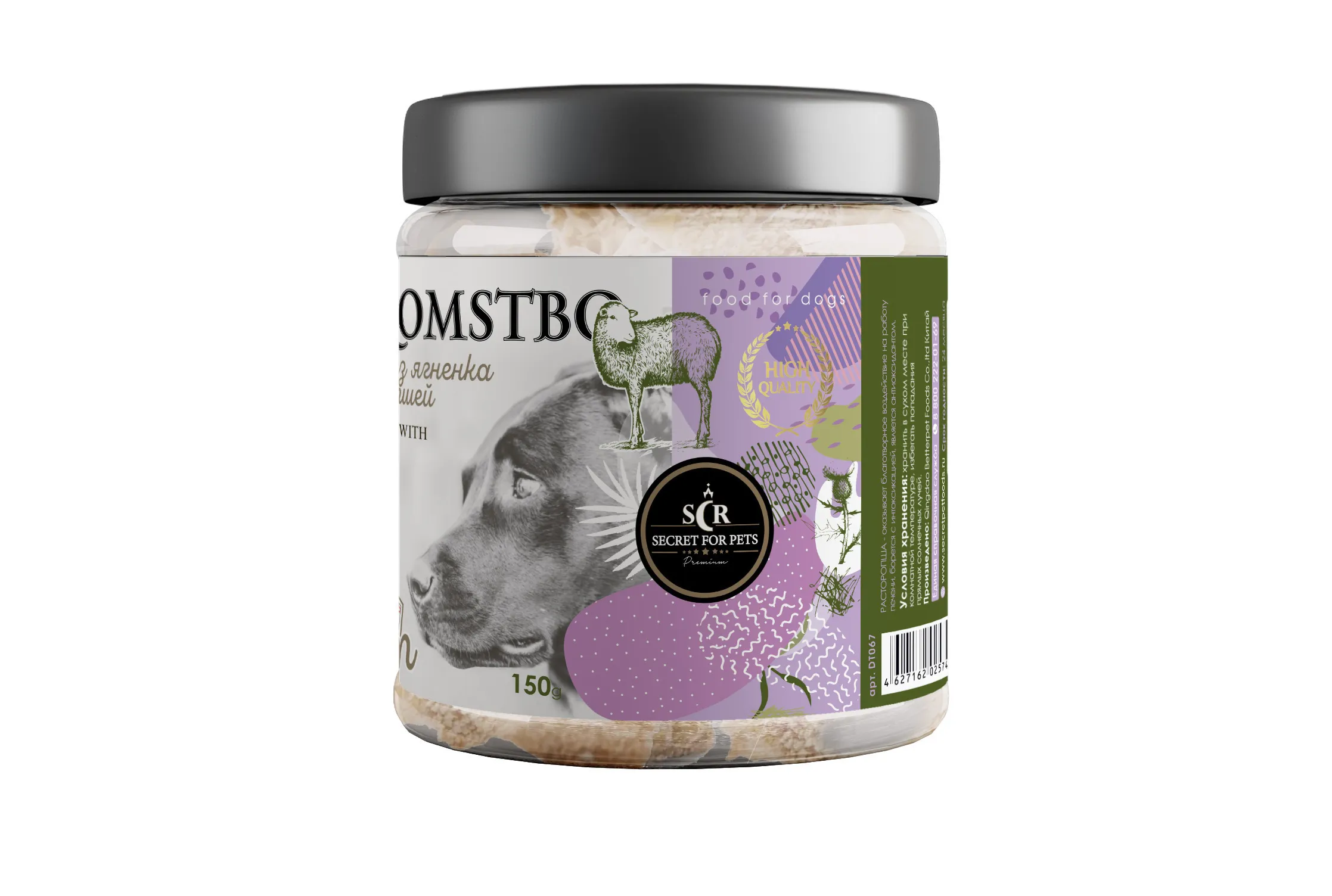 Состав: мясо ягненка и субпродукты из ягненка - 64,2%, расторопша - 5 %, растительный протеин -16,8 %, крахмал - 7,8%, глицерина - 7,8%, минеральные вещества - 0,2%