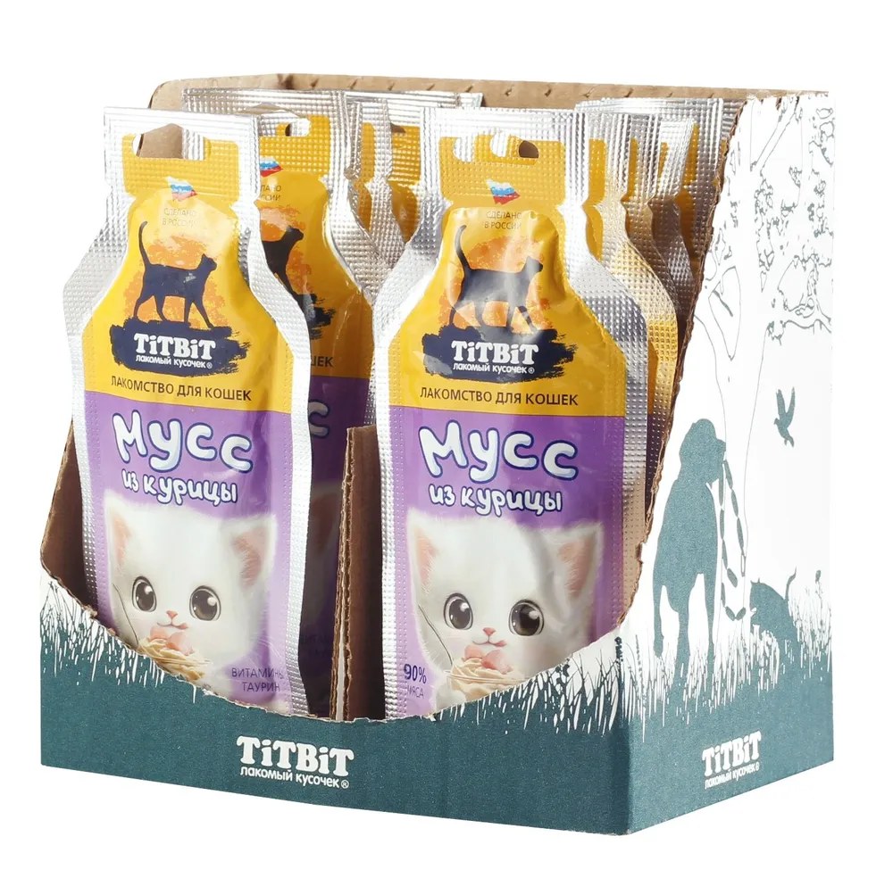 Главная Каталог Зоотовары Корм для кошек Лакомства 15г Лакомство TitBit для кошек Мусс из Курицы