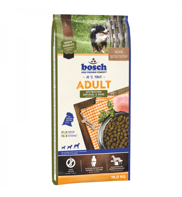 15кг Корм Bosch Adult для взрослых собак всех пород с Птицей и просо