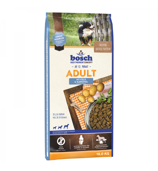 15кг Корм Bosch Adult для взрослых собак всех пород с Рыбой и картофелем