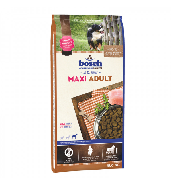 15кг Корм Bosch Maxi Adult для взрослых собак крупных пород с Курицей