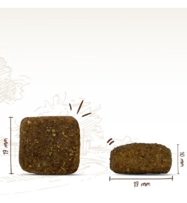 Ингредиенты: Мука из свежего мяса домашней птицы, ячмень, маис, пшеничная мука, пшеница, животный жир, мука из свежего мяса, пшеничные отруби, гидролизованное мясо, рыбная мука, свекольная пульпа, горошек, дрожжи (дегидратированные),  поваренная соль, мука из мидий, экстракт новозеландского зеленогубчатого моллюска (натуральный продукт для поддержания функции тканей, хрящей и суставов), хлорид калия, порошок цикория.