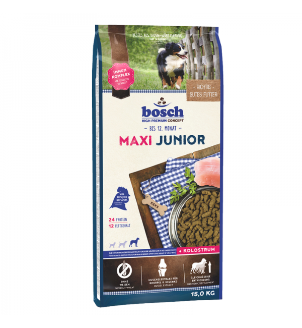 15кг Корм Bosch Maxi Junior для щенков крупных пород до года из мяса Птицы