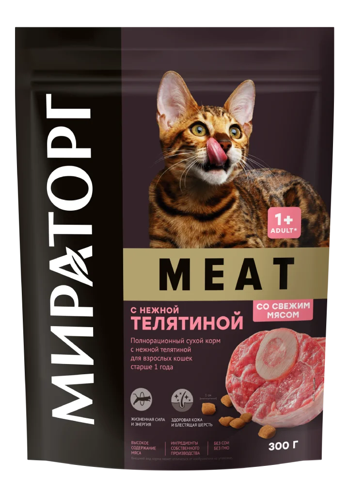 Полнорационный сухой корм с нежной телятиной для взрослых кошек старше 1 года