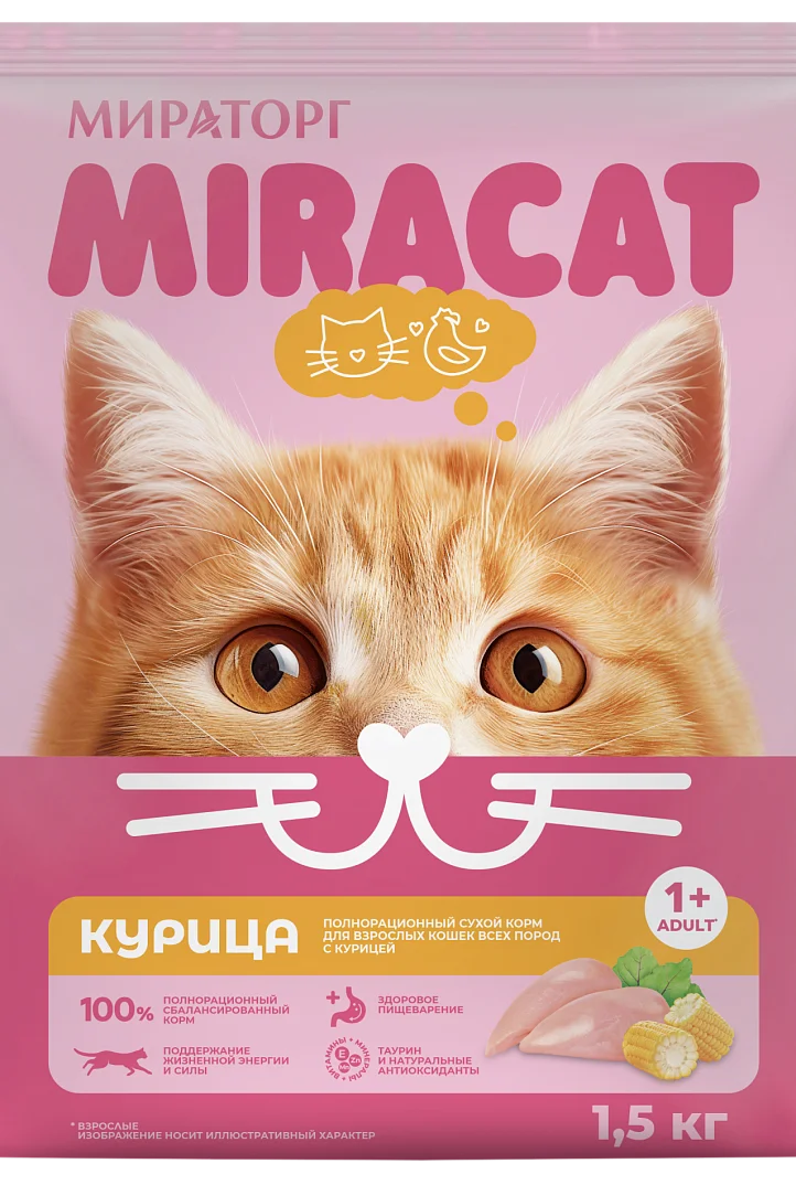 1,5кг Корм Мираторг Miracat для взрослых кошек всех пород с Курицей