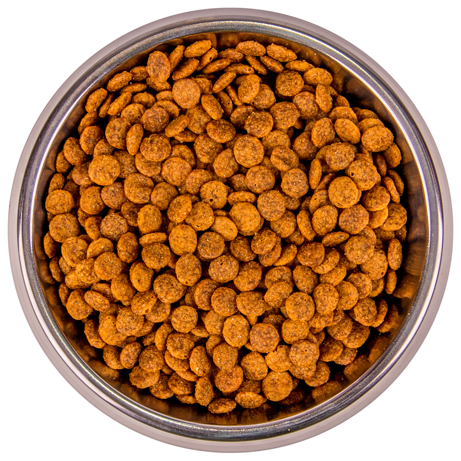 Состав: Рис, кукурузная клейковина, курица (дегидрированное мясо 18%, свежее мясо 5%), рыба (дегидрированный лосось), животный жир (очищенный куриный жир 99,5%), овес, гидролизованные животные белки (свиная и куриная печень), сушеный горох, яичный порошок, рыбий жир 1% (очищенное на 99,5% масло лосося), минеральные вещества, дрожжевые продукты (источник M.O.S. 1%), ксилоолигосахариды (X.O.S. 0,3%), юкка Шидигера (0,1%).