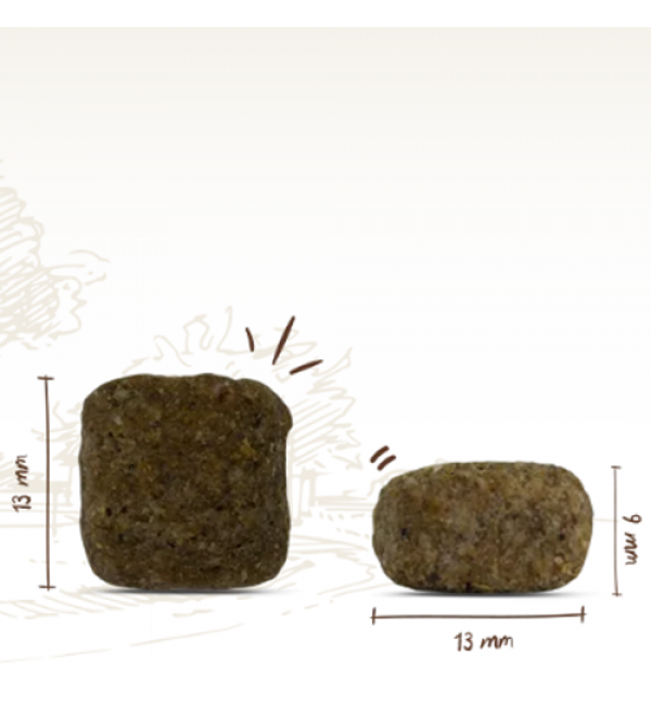 Состав: Свежая птица (30%), ячмень, кукуруза, птичий белок (сушеный), просо, птичий жир, свиной белок (сушеный), сушеный жом свеклы (обессахаренный), белковый гидролизат, льняное семя, рыбная мука, горох (сушеный), рыбий жир , дрожжи (сушеные, 0,1 % маннаноолигосахаридов, 0,06 % бета-глюканов), хлорид натрия, мидии с зелеными губами (сушеные, 0,1 %), хлорид калия, цикорий (сушеный).