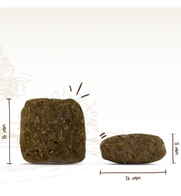 Состав: Свежая птица (30%), просо (17,5%), ячмень, кукуруза, белок птицы (сушеный), рис, гидролизат белка, сушеный жом свеклы (обессахаренный), рыбная мука, птичий жир, горох (сушеный), дрожжи (сушеный, 0,1%), маннаноолигосахариды, 0,06% бета-глюканы), рыбий жир, хлорид натрия, хлорид калия, зеленогубые мидии (сушеные, 0,1%), цикорий (сушеный).