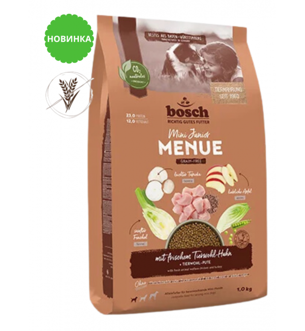1кг Корм Bosch HPC MENUE Mini Junior беззерновой для щенков мелких пород с Курицей