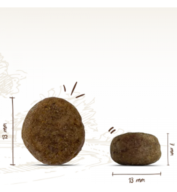 Состав: Белок птицы (сушеный, 18%), рис, ячмень, кукуруза, просо, жом свеклы сухой (обессахаренный), волокна целлюлозы, гидролизат белка, рыбная мука, жир птицы, горох (сушеный), рыбий жир, дрожжи (сухие, 0,1%). маннанолигосахариды, 0,06% бета-глюканов), хлорид калия, хлорид натрия, зеленогубая мидия (сушеная, 0,1%), цикорий (сушеный).