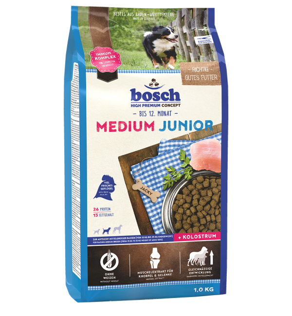 1кг Корм Bosch Medium Junior для щенков средних пород до года из мяса Птицы