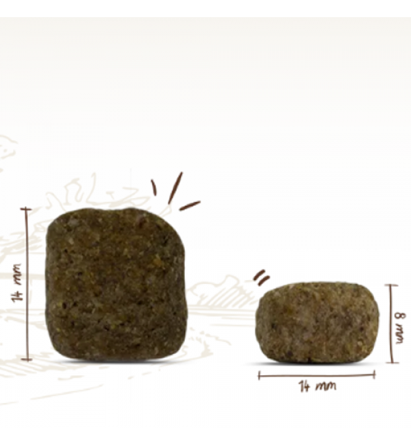 Состав: Свежее мясо домашней птицы (30%), ячмень, кукуруза, птичий белок (сушеный), рис, сушеный жом свеклы (обессахаренный), птичий жир, свиной белок (сушеный), белковый гидролизат, рыбная мука, льняное семя, горох (сушеный), дрожжи ( сушеные, 0,1% маннанолигосахаридов), 0,06% бета-глюканов), рыбий жир, молозиво (0,2%), хлорид натрия, зеленогубые мидии (сушеные, 0,1%), цикорий (сушеный), хлорид калия.