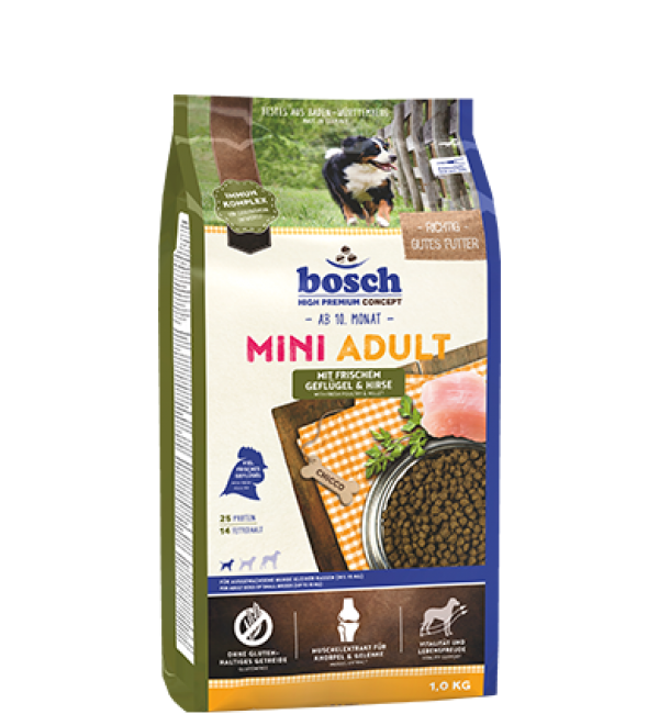 1кг Корм Bosch Mini Adult для взрослых собак мелких пород с Птицей и просо