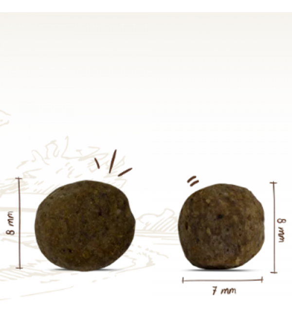 Состав: Свежая птица (25%), рис, кукуруза, просо, птичий белок (сушеный), клетчатка, сухой жом свеклы (обессахаренный), кукурузный белок (сушеный), гидролизат белка, горох (сушеный), рыбная мука, льняное семя, дрожжи ( сушеные, 0,1% маннанолигосахаридов, 0,06% бета-глюканов), рыбий жир, хлорид калия, хлорид натрия, зеленогубые мидии (сушеные, 0,1%), цикорий (сушеный).