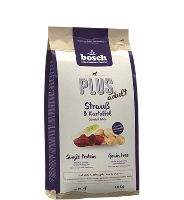 Корм для собак Bosch PLUS Adult Ostrich & Potato (Страус с картофелем)