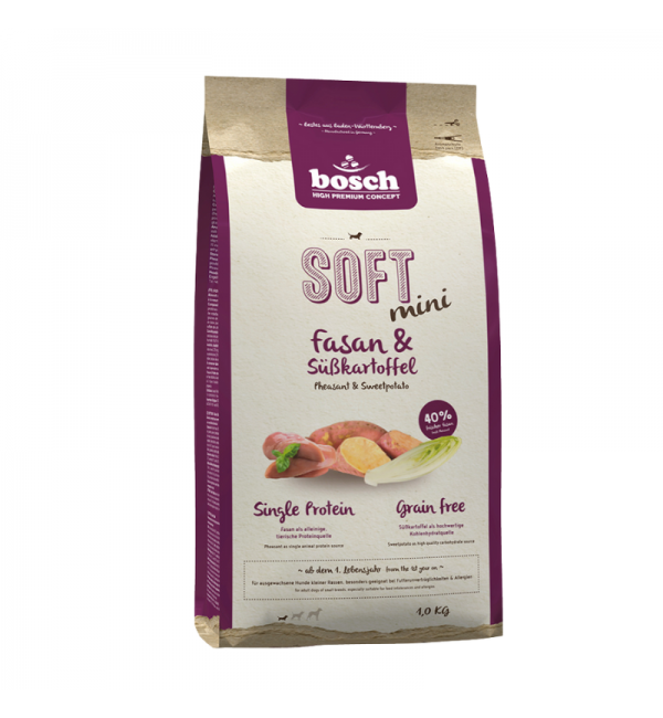 1кг Корм Bosch SOFT Holistic Mini полувлажный, монопротеиновый, беззерновой для взрослых собак мелких пород из мяса Цесарки с бататом