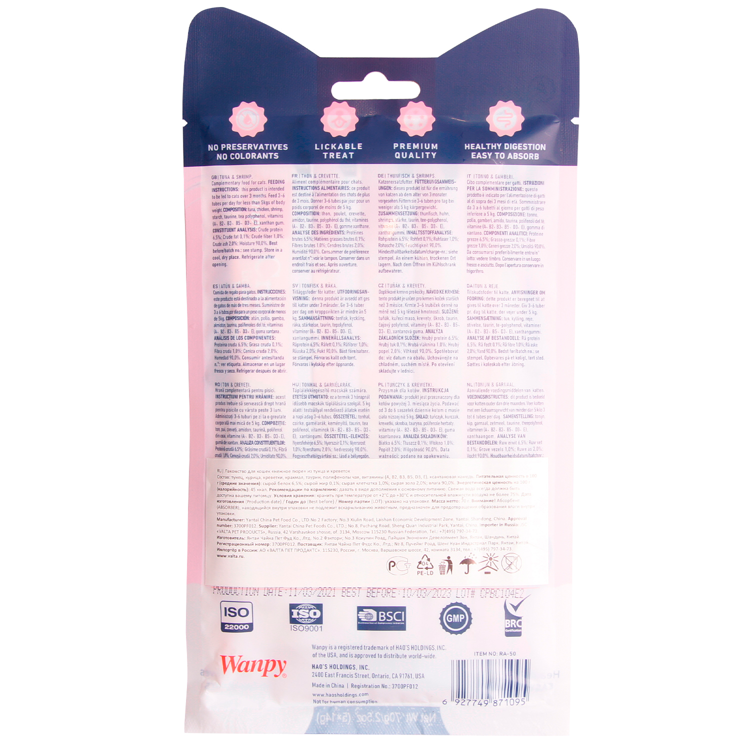 1шт*14г Лакомство Wanpy Cat для кошек Нежное пюре из Тунца и Креветками