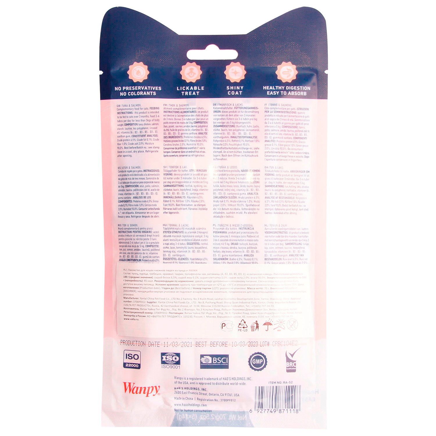 1шт*14г Лакомство Wanpy Cat для кошек Нежное пюре из Тунца и Лосося