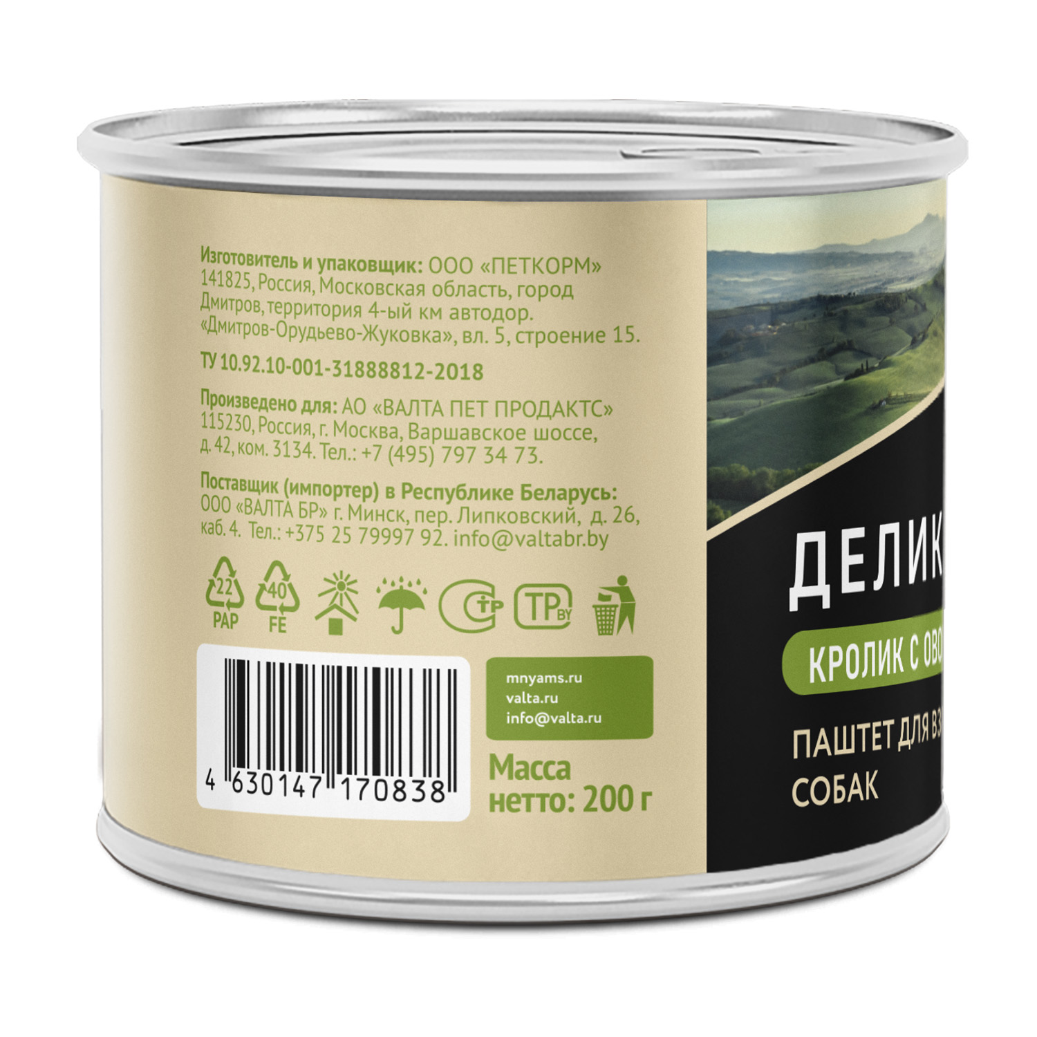 Влажный корм Мнямс Деликатес Паштет из кролика с овощами для собак всех пород "Касуэла по-мадридски".