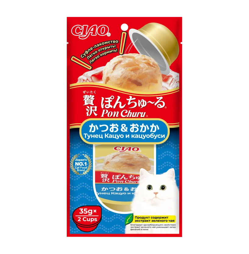2*35гр Лакомство INABA CIAO Pon Churu для кошек Тунец Кацуо и Кацуобуси