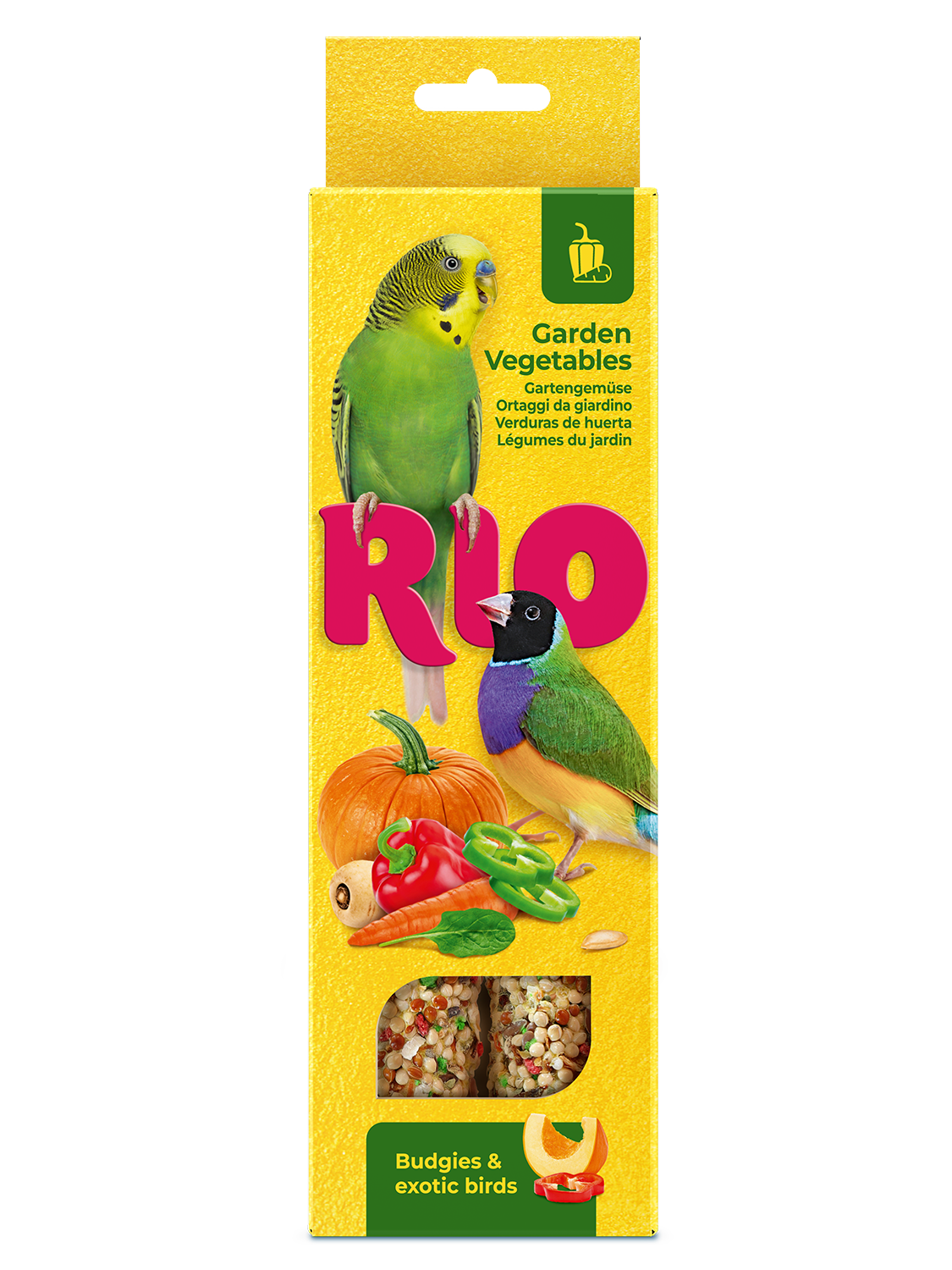 Главная Каталог Зоотовары Корм для птиц Лакомства 2*40гр RIO Sticks палочки для волнистых попугаев и экзотических птиц с Садовыми овощами