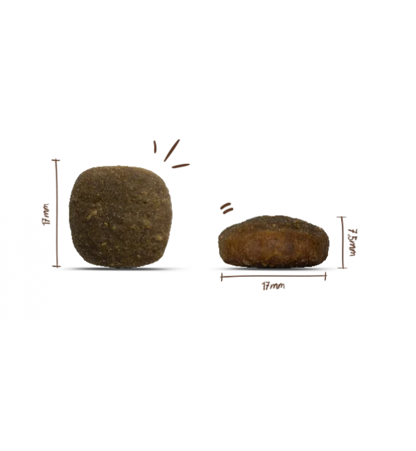 Состав: Свежая курица (60%), подорожник (сушеный, 9%), картофельная мука, картофельный крахмал, картофельный белок, горох (сушеный), гороховая клетчатка, гидролизат белка (вегетарианский), птичий жир, цикорий (сушеный, 0,25%), подорожник, дрожжи (сушеные, в т.ч. 0,04% бета-глюканов), глюкозамин, хондроитинсульфат, юкка (сушеная).