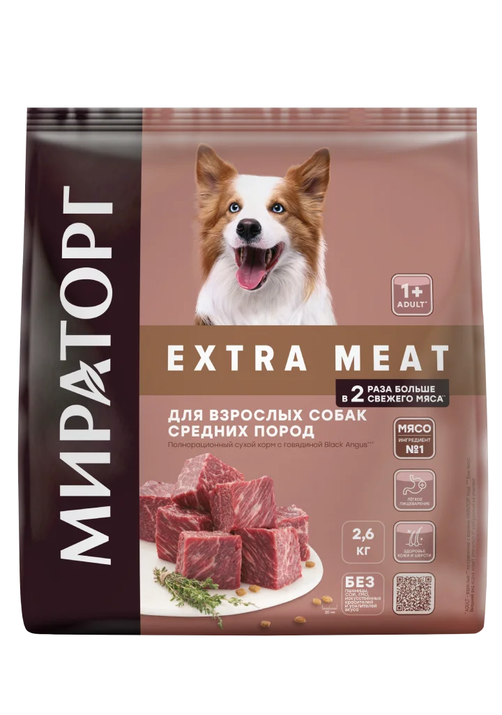 2,6кг Корм Мираторг Extra Meat Black Angus для взрослых собак средних пород старше 1 года с Говядиной