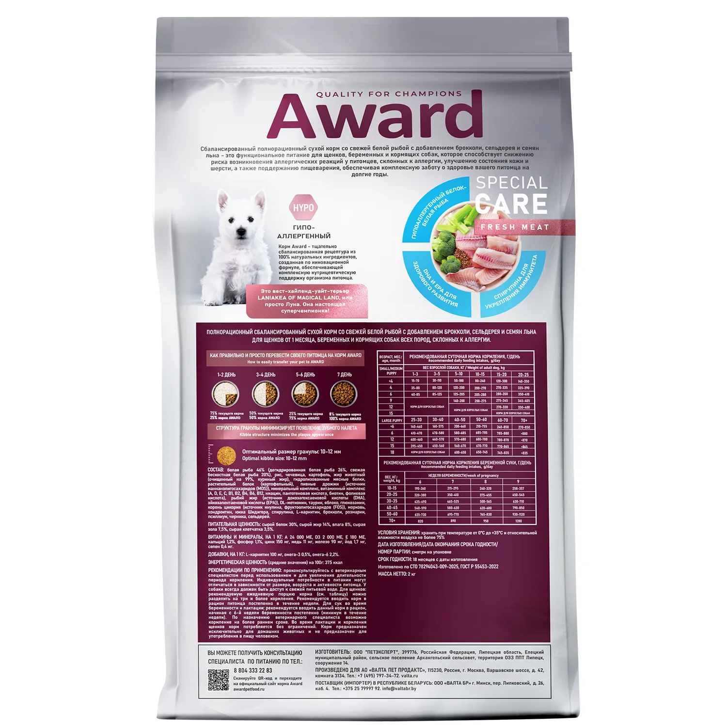 2кг Корм Award SPECIAL CARE HYPO PUPPY для щенков от 1 месяца, беременных и кормящих собак всех пород, склонных к аллергии со свежей белой Рыбой