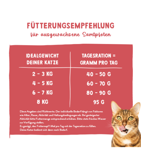 Беззерновая формула, но с легкоусвояемым картофелем в качестве мягкого источника углеводов: эта беззерновая формула особенно подходит для кошек с непереносимостью зерновых или чувствительной пищеварительной системой. Это обеспечивает оптимальную усвояемость и полное удовлетворение потребностей желудка.