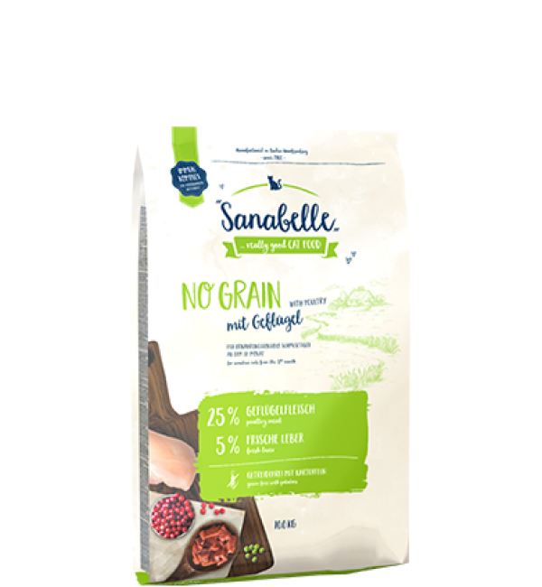 Сухой корм Sanabelle NO GRAIN содержит большое количество картофеля, легко усваивается и даёт животным много энергии и хороший заряд бодрости. Использование экстракта зеленогубчатого моллюска благотворно влияет на развитие хрящей и суставов животного. Высокое качество ингредиентов даёт корму насыщенный и выдающийся вкус. Повышенная питательность позволяет кошкам насыщаться меньшим количеством корма.