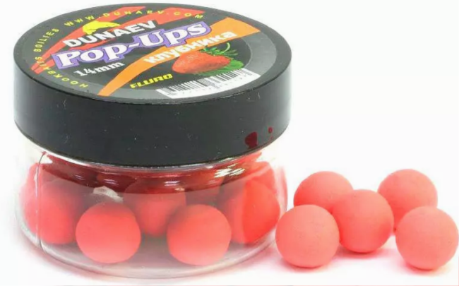 POP-UP бойлы Dunaev Клубника обладают положительной плавучестью. Используются в качестве насадки в чистом виде, либо в различных комбинациях с тонущими бойлами.