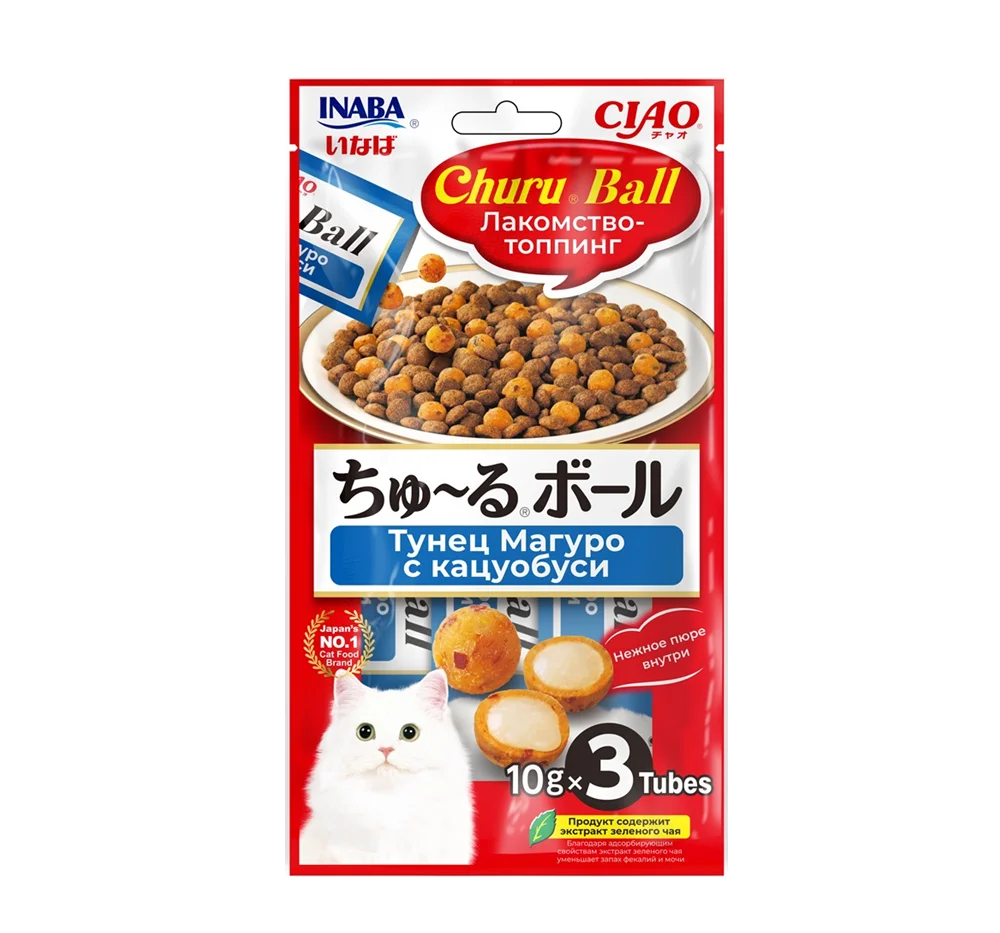 Главная Каталог Зоотовары Корм для кошек Лакомства 3*10гр Лакомство-топпинг INABA CIAO Churu Ball для кошек с Тунцом Магуро и кацуоб