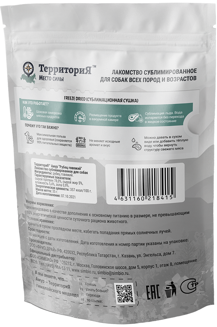 Что это значит? Лакомства ТерриториЯ Амур на 100% состоят из натурального мяса, а инновационная freeze dried технология позволяет сохранить максимум полезных веществ.