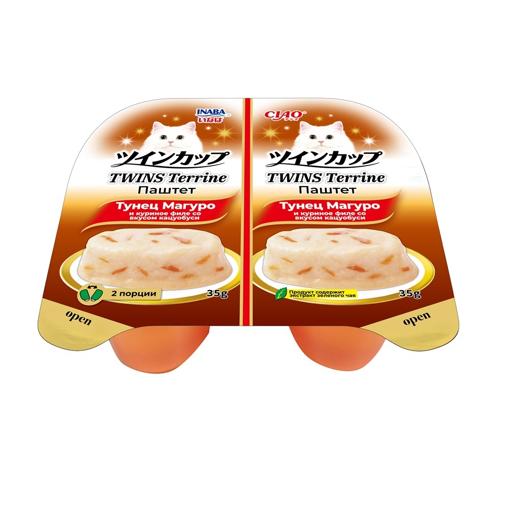 35гр*2шт Паштет INABA CIAO TWINS Terrine для кошек с Тунцом, курицей и кацуобуси