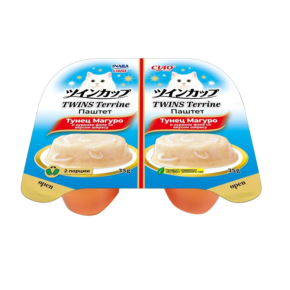 35гр*2шт Паштет INABA CIAO TWINS Terrine для кошек с Тунцом, курицей и ширасу