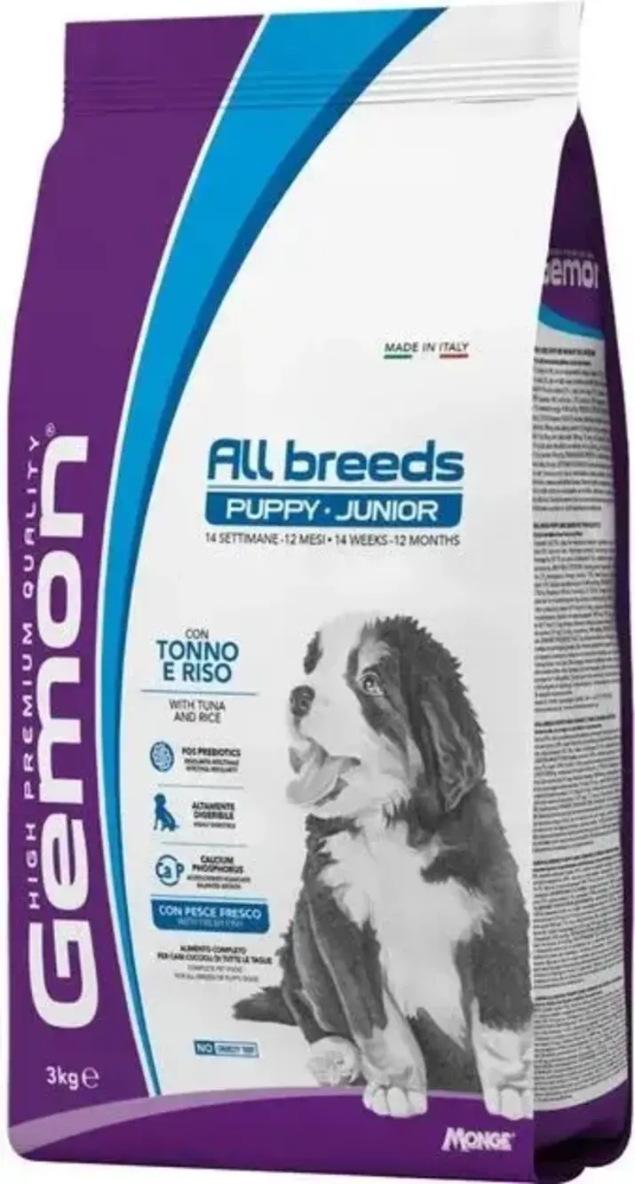 Gemon Dog Puppy&Junior ALL BREEDS TUNA / RICE для щенков и молодых собак с Тунцом и рисом, 3кг