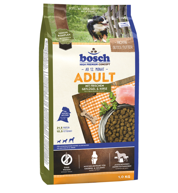 3кг Корм Bosch Adult для взрослых собак всех пород с Птицей и просо