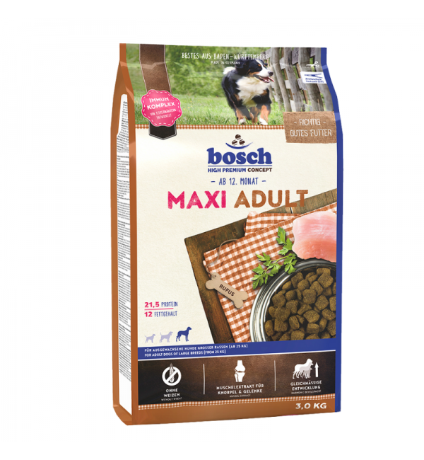 Bosch Adult Maxi - полноценный сбалансированный рацион для взрослых собак крупных пород.
